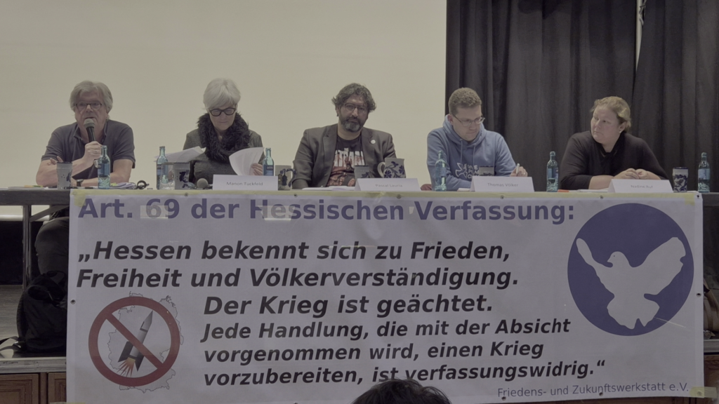 Am 13.2.2025 hat das Wiesbadener Bündnis gegen Raketenstationierung mit Lühr Henken als Referenten und den Bundestagskandidat/innen Nadine Ruf (SPD), Thomas Völker (Die Linke) und Pascal Lauria (BSW) eine Informations- und Diskussionsveranstaltung zur geplanten Stationierung von US-Mittelstreckenraketen mit Kommandozentrale in Wiesbaden durchgeführt. Die vielseitige und lebhafte Debatte berührte auch verschiedene Themen rund um die aktuelle Großmacht- und Aufrüstungspolitik in Deutschland, Europa und der ganzen Welt. Am Ende meldete sich dann auch noch der ehemalige Wiesbadener Oberbürgermeister Achim Exner (SPD) mit einer bewegenden Schlussrede zu Wort. Die vollständige Aufzeichnung der Veranstaltung finden Sie hier.